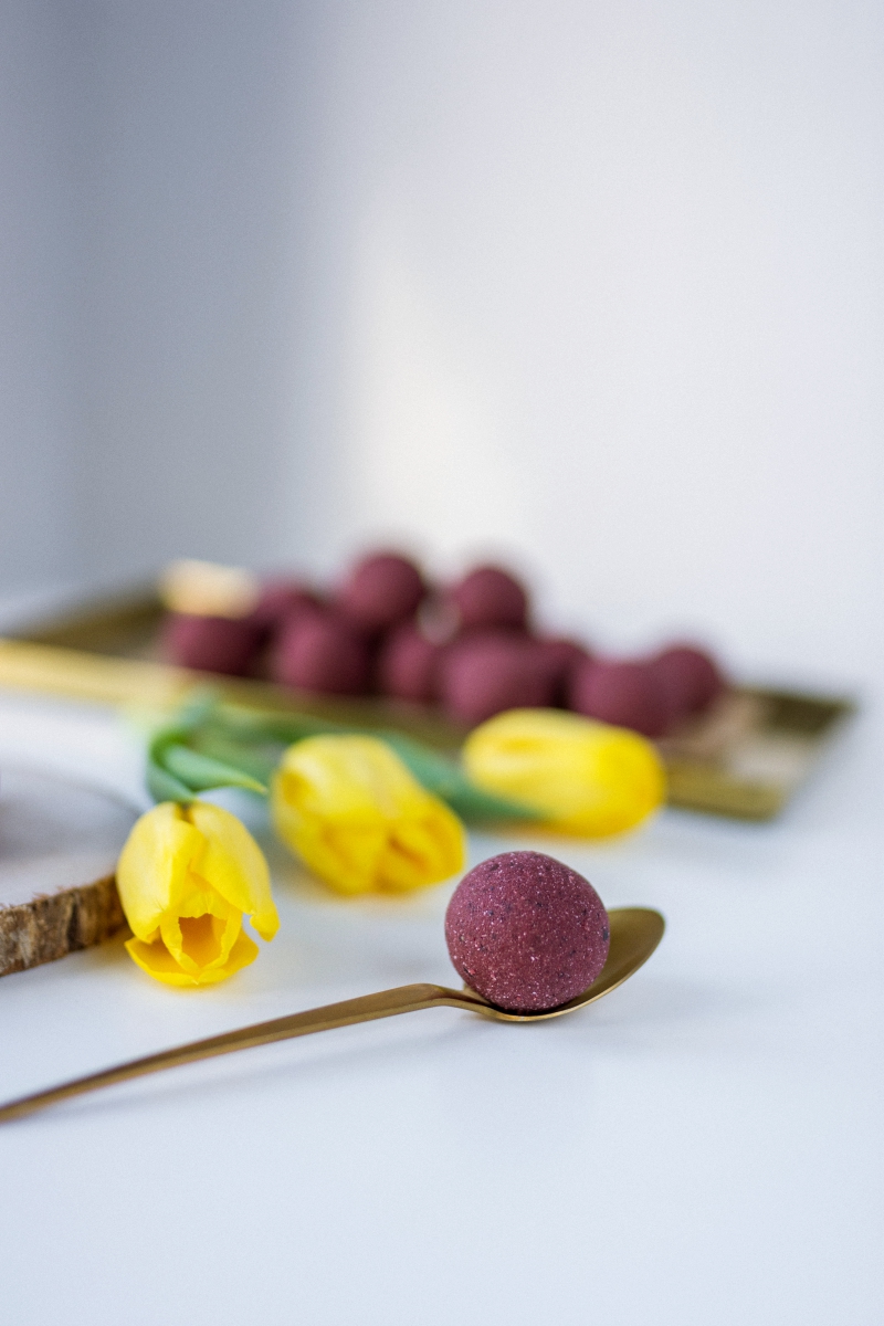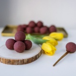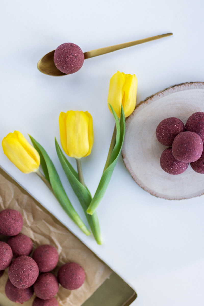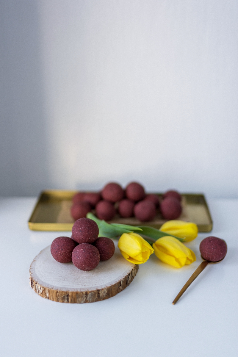 Wegańskie i bezglutenowe pralinki ze sproszkowanym burakiem.