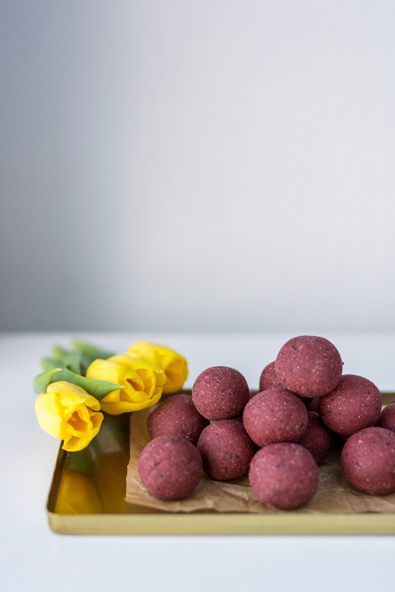Łatwo można przesadzić również i w drugą stronę. Zatrzęsienie super foods, gotowych mieszanek czy zdrowych produktów, które zbyt często zaczynają zastępować nam owoce i warzywa, też nie jest dobre. Warto szukać swojej równowagi, a dietę dopasowywać do stylu życia i miejsca, w którym obecnie żyjemy. Dlaczego o tym piszę? A no dlatego, że sama mieszkam w północnej Norwegii, gdzie dostęp do świeżych warzyw i owoców jest nieco utrudniony. Na sklepowych półkach znajdziemy bardzo dużo, jednak większość warzyw i owoców pochodzi z importu lub jest po prostu droga. Dlatego z zaciekawieniem sięgnęłam po sproszkowanego buraka, którego znalazłam w polskim Rossmannie. Pewnie, że nie zastąpi on nam w 100% świeżego warzywa, ale w sproszkowanej formie zachowuje praktycznie wszystkie właściwości. Burak, oprócz wysokiej zawartości np. potasu, bardzo pozytywnie wpływa na regenerację organizmu, często sięgają po niego sportowcy. Błyskawiczne pralinki, które przygotowałam, okazały się strzałem w dziesiątkę!