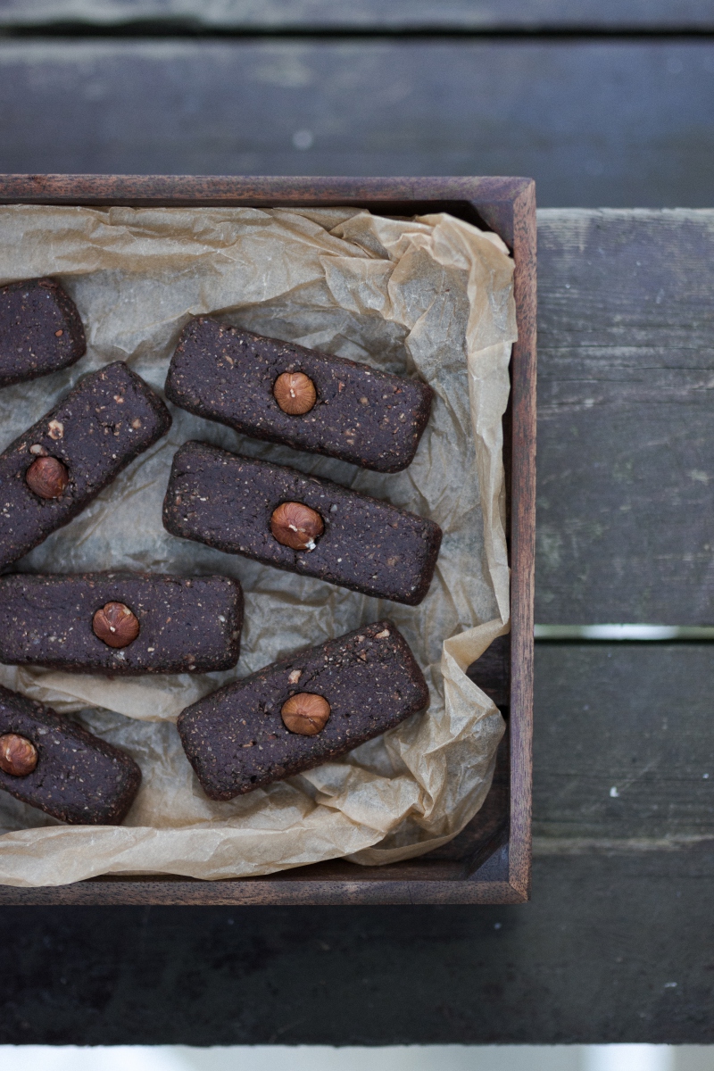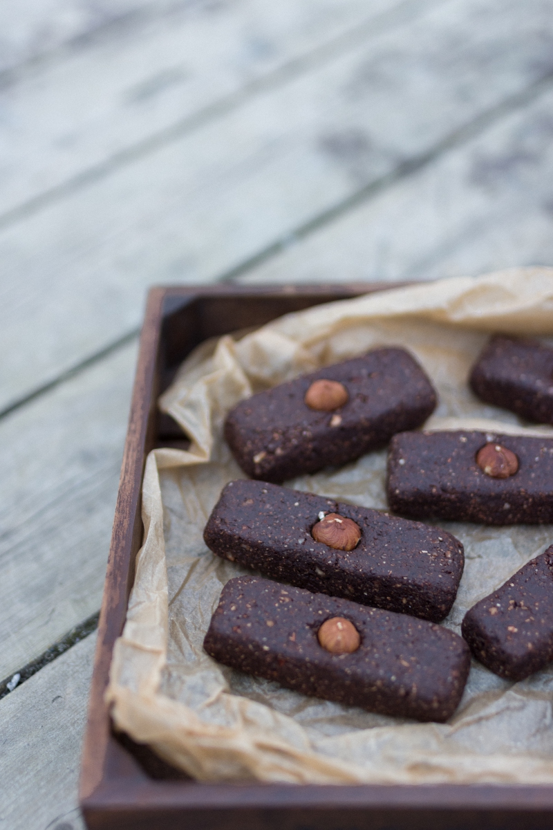 Z masy formować małe batoniki, a każdy z nich można ozdobić orzechem laskowym. Ja zrobiłam to ręcznie, formując najpierw małą kulkę, a następnie prostokąt. Gotowe batoniki ułożyć na talerzu/desce wyłożonej papierem do pieczenia, by nie przykleiły się do naczynia.