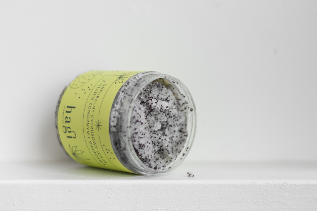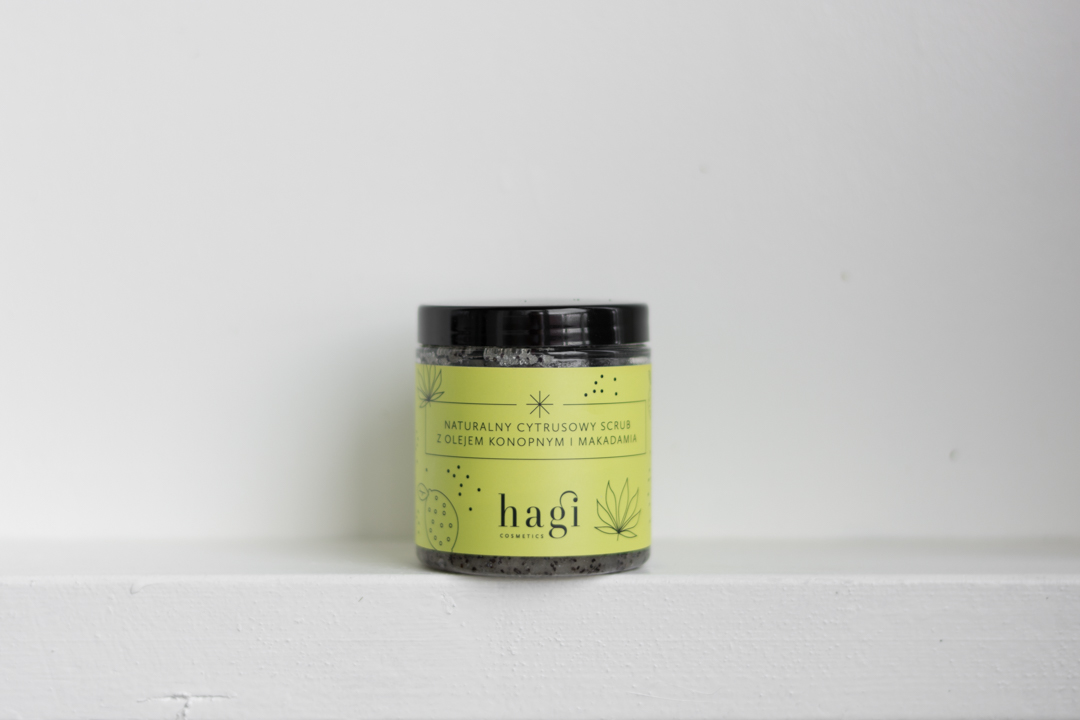 Hagi Cosmetics to polska marka, która w swojej ofercie ma naturalne, ręcznie wytwarzane, certyfikowane kosmetyki, robione w 100% w Polsce. Nie wszystkie produkty są wegańskie, jeśli komuś na tym zależy, warto zawsze sprawdzić skład. Do tej marki wracam naprawdę często, scrub nie jest pierwszym produktem, na który się zdecydowałam. W domu mam cudowną świecie sojową oraz używałam już innego scrubu, który sprawdził się równie dobrze.