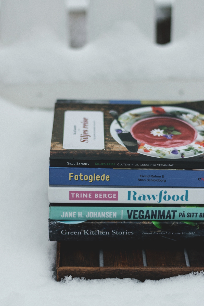 Książki to naprawdę świetny sposób na naukę języka norweskiego! Większość z nich wypożyczam z lokalnej biblioteki, która jest w Bodø naprawdę dobrze zaopatrzona! Jak widzisz na zdjęciach, sięgam po książki kucharskie, które opowiadają również o wegetariańskim i wegańskim stylu życia. Pierwsza książka, czyli Siljes reise to moja własność, a kupisz ją np. tutaj. W tej książce znajdziemy mnóstwo przydatnego słownictwa dotyczącego zdrowego i świadomego odżywiania. Autorka, oprócz przepisów, dzieli się różnymi poradami, wskazówkami itp. Przepisy szczególnie nie zachwycają, ale ja tę książkę kupiłam ze względu na naukę języka. Inne książki kucharskie wypożyczam w bibliotece. Jeśli interesujecie się wegańskim stylem życia, bardzo polecam Wam Veganmat på sitt beste. Napisana prostym językiem, co jednocześnie sprawia, że jest skarbnicą słownictwa!