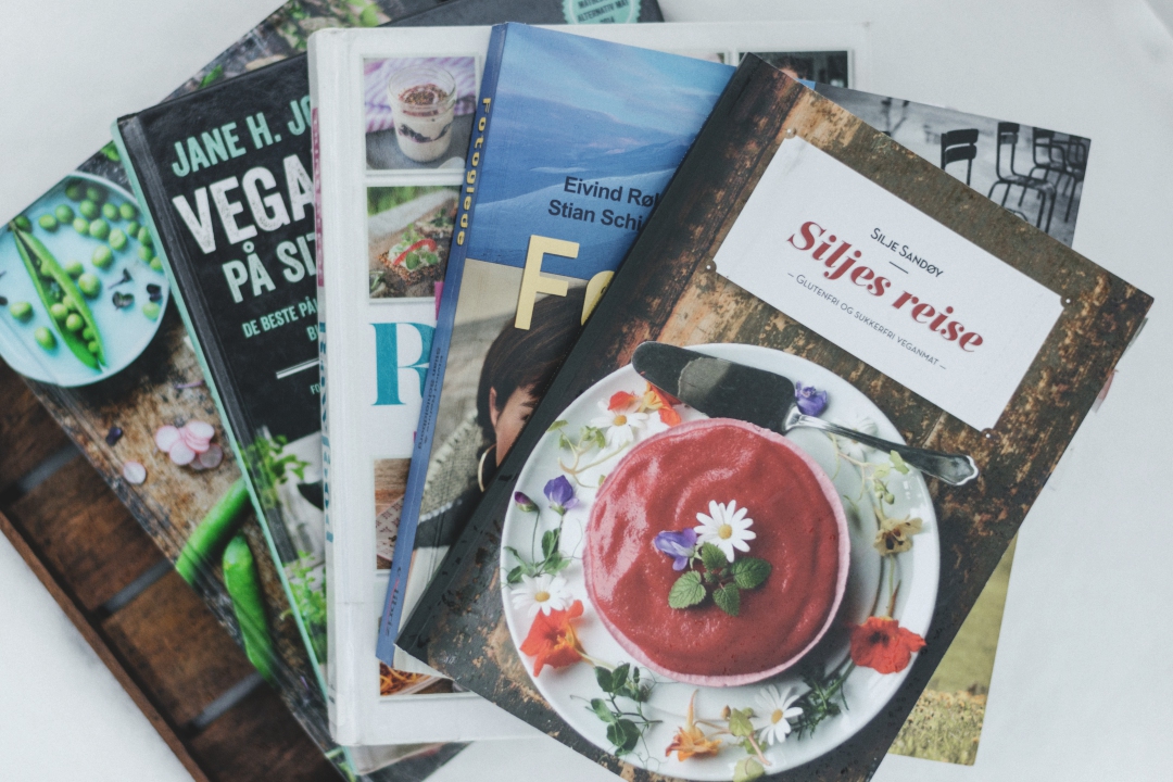 Książki to naprawdę świetny sposób na naukę języka norweskiego! Większość z nich wypożyczam z lokalnej biblioteki, która jest w Bodø naprawdę dobrze zaopatrzona! Jak widzisz na zdjęciach, sięgam po książki kucharskie, które opowiadają również o wegetariańskim i wegańskim stylu życia. Pierwsza książka, czyli Siljes reise to moja własność, a kupisz ją np. tutaj. W tej książce znajdziemy mnóstwo przydatnego słownictwa dotyczącego zdrowego i świadomego odżywiania. Autorka, oprócz przepisów, dzieli się różnymi poradami, wskazówkami itp. Przepisy szczególnie nie zachwycają, ale ja tę książkę kupiłam ze względu na naukę języka. Inne książki kucharskie wypożyczam w bibliotece. Jeśli interesujecie się wegańskim stylem życia, bardzo polecam Wam Veganmat på sitt beste. Napisana prostym językiem, co jednocześnie sprawia, że jest skarbnicą słownictwa!
