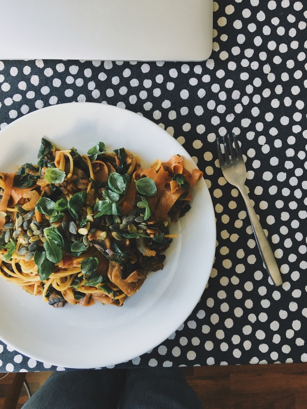 Przez ostatnie 3-4 miesiące pracowałam około 80 godzin miesięcznie. W maju miałam ich o 100 więcej. Dla mojego wrażliwego ciała był to niezły skok na głęboką wodę. Pracując w kawiarni, naprawdę dużo się ruszam, dlatego aktywność fizyczna została przeze mnie nieco ograniczona. Ćwiczyłam głównie domową jogę i jeśli tylko pogoda na to pozwalała, wyskakiwałam na rower. Jak trzeba było, gniłam w łóżku, oglądając seriale, czytając norweskie blogi czy książki, bo organizm nie maszyna, musi przyzwyczaić się do nowego trybu. Obecnie wraca mi energia, mam siłę na trening i czuję, że mam się dużo lepiej. Do nic nierobienia i odpoczynku motywował mnie Mateusz, który często ściągał mnie na ziemię tłumacząc, że mam prawo się odłączyć. No dobra, może nie od razu wciskając guzik OFF, ale chociaż zmniejszając moc. W maju starałam się jeść całkiem różnorodnie, ale nie ukrywam, że były dni, kiedy na talerzu w kółko lądowało to samo. Na szczęście kreatywność powoli wraca na stare tory, co mam nadzieję, odbije się również na blogowaniu.