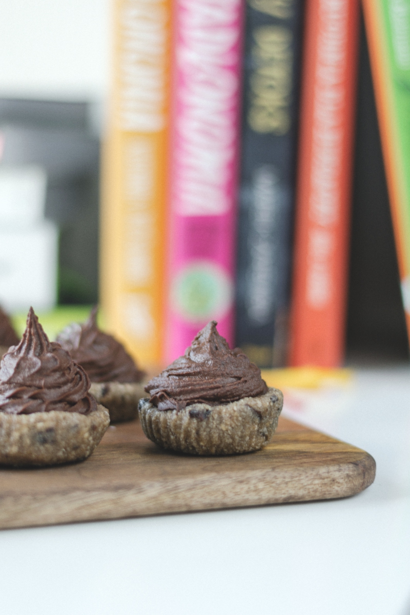 Do wyłożenia babeczek masą wykorzystałam rękaw cukierniczy i jedną z końcówek, które pomogły mi uzyskać piękny efekt widoczny na zdjęciach. Gotowe babeczki należy odstawić na kilka godzin do lodówki, czekoladowy krem stężeje, a smaki jeszcze bardziej się połączą. Kremu wyszło mi więcej, niż spodu, dlatego przygotowałam jeszcze dwa słoiczki wypełnione tym czekoladowym cudem. Można po prostu przygotować więcej masy na spód, np. 1,5 porcji i zrobić dodatkowe babeczki albo wykorzystać go jako smarowidło na domowy chlebek, do owsianki itp.